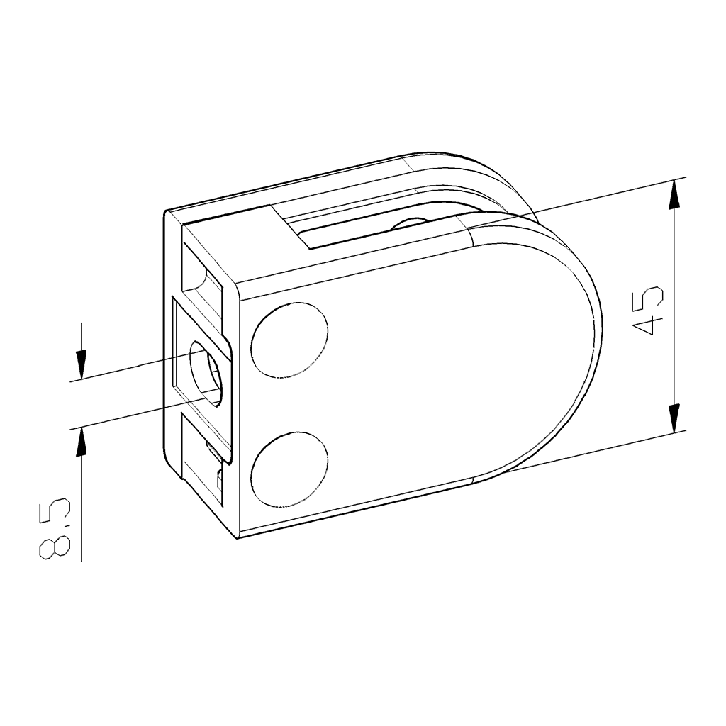 Glasklemme Modell 02, Anschluss für Vierkantrohr, Zinkdruckguss Edelstahleffekt